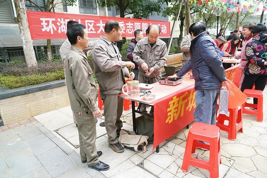 在新春佳節(jié)即將來臨之際,為深入助力文明城區(qū)創(chuàng)建,提升居民幸福感,營造春節(jié)的節(jié)日氣氛,1月23日上午,新城投資集團(tuán)黨支部聯(lián)合環(huán)湖社區(qū)黨支部、宏謀物業(yè)公司在國惠村開展了“便民服務(wù)驛站”國惠村專場暨“喜迎新春寫對聯(lián) 書香情滿送祝?!被顒?,為居民維修家電,送上春聯(lián),帶去節(jié)日的問候。新城投資集團(tuán)黨支部書記周道林,副書記鄧仁友,工會主席譚力源,環(huán)湖社區(qū)黨支部書記李伊倩,宏謀物業(yè)公司總經(jīng)理劉孝國出席了活動。1