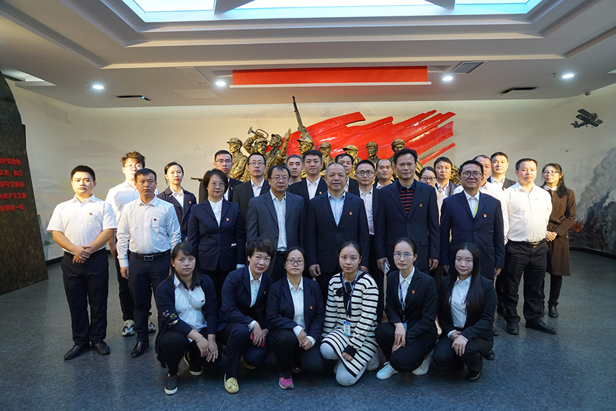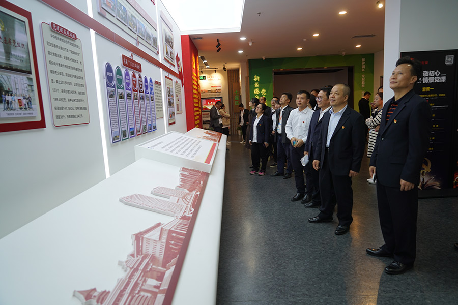 活動當(dāng)天,大家參觀了位于新城投資集團(tuán)辦公大樓一、二樓的桂林市黨群服務(wù)中心。講解員為黨員們一一講解了中心的定位、功能及各展區(qū)的內(nèi)容,黨員們認(rèn)真聆聽講解員的講解,依次參觀了桂林市黨員志愿者服務(wù)總站、黨群業(yè)務(wù)受理區(qū)和黨組織活動區(qū)等展廳。體驗了“健康小屋”“城市書吧”“i游桂林”“時光隧道”“微笑墻”“非遺文化屋”“紅色影院”“電子翻書”等功能設(shè)施。通過觀看3D幻影成像《湘江戰(zhàn)役》和微電影《廖俊波》,真切感受了先輩們踐行初心拋頭顱、灑熱血的壯舉及廖俊波同志對黨忠誠、無私奉獻(xiàn)的高尚品質(zhì)。在以湘江戰(zhàn)役為歷史背景而制作的雕塑前,全體黨員合唱《國際歌》《中華人民共和國國歌》,重溫入黨誓詞。