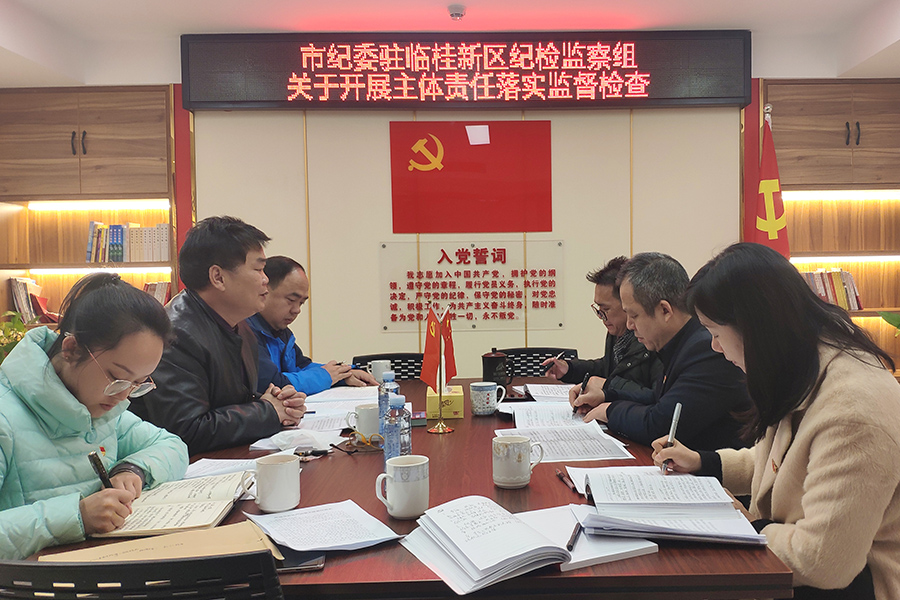 12月14日上午,市紀(jì)委派駐臨桂新區(qū)管委會紀(jì)檢監(jiān)察組副組長唐良平一行到新城投資集團,召開2020年度全面從嚴(yán)治黨主體責(zé)任落實情況檢查匯報會。