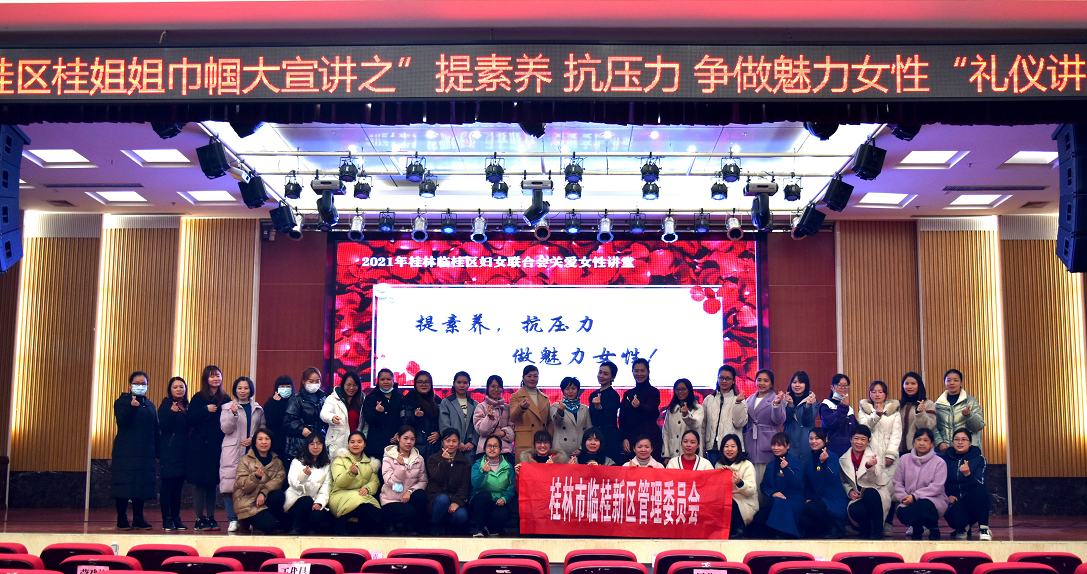 3月4日,公司女職工踴躍報名,與新區(qū)管委會女職工代表一起參加了臨桂區(qū)婦聯(lián)舉辦的“提素養(yǎng) 抗壓力 爭做魅力女性”禮儀講座。授課老師劉虹希女士通過講解和現(xiàn)場演示等方式,對接待禮儀、會議禮儀、服務禮儀及行車禮儀進行了現(xiàn)場演示。通過培訓,加深了女職工對儀態(tài)禮儀重要性認識,提升了女職工的抗壓能力和綜合素養(yǎng),展現(xiàn)了新區(qū)女職工積極向上的精神風貌。