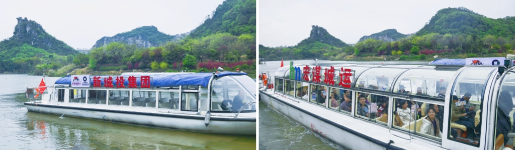 下午14時(shí),壽星們齊聚水一坊碼頭,乘“新城投號(hào)”“宏謀城運(yùn)號(hào)”開(kāi)啟臨桂區(qū)環(huán)城水系全景游覽。碧波瀲滟的水面、錯(cuò)落有致的綠化景觀、古香古韻的橋梁建筑,這正是集團(tuán)近年來(lái)實(shí)施水溪支流、景觀提升工程的生動(dòng)注腳。通過(guò)實(shí)施一系列水系治理和綠化提升,環(huán)城水系不僅成為市民休閑娛樂(lè)的新去處,也成為集團(tuán)踐行綠色發(fā)展理念的重要成果展示窗口和臨桂區(qū)“生態(tài)會(huì)客廳”。