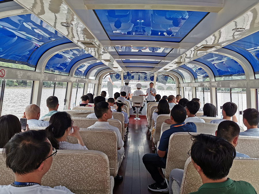 集團公司組織新員工來到水一坊碼頭,乘船游覽了新區(qū)水系,參觀了新區(qū)規(guī)劃館、新城國奧花園和市紀檢監(jiān)察綜合業(yè)務(wù)基地等重點項目,幫助新員工切身實地體會集團公司總體規(guī)劃、項目成果和一線建設(shè)熱潮。