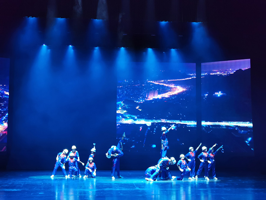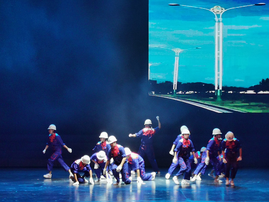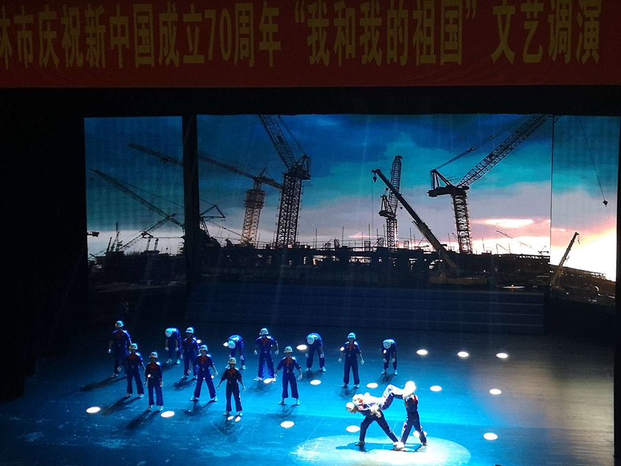 2019年8月10日晚上,桂林市慶祝新中國成立70周年“我和我的祖國”文藝調(diào)演國資委系統(tǒng)節(jié)目在桂林大劇院演出,經(jīng)過選拔,多個(gè)國資企業(yè)選送的13個(gè)節(jié)目精彩上演,打造了一場國資系統(tǒng)文藝活動盛宴。市委常委、常務(wù)副市長張曉武觀看了演出。在這次文藝調(diào)演晚會上,新城投資集團(tuán)選送的舞蹈《勝地筑夢人》,以其鮮明向上的主題、動感激情的節(jié)奏、精心感人的舞蹈設(shè)計(jì)、以及演員們整齊劃一、精神飽滿的精彩演出,成為晚會閃耀的亮點(diǎn)之一!