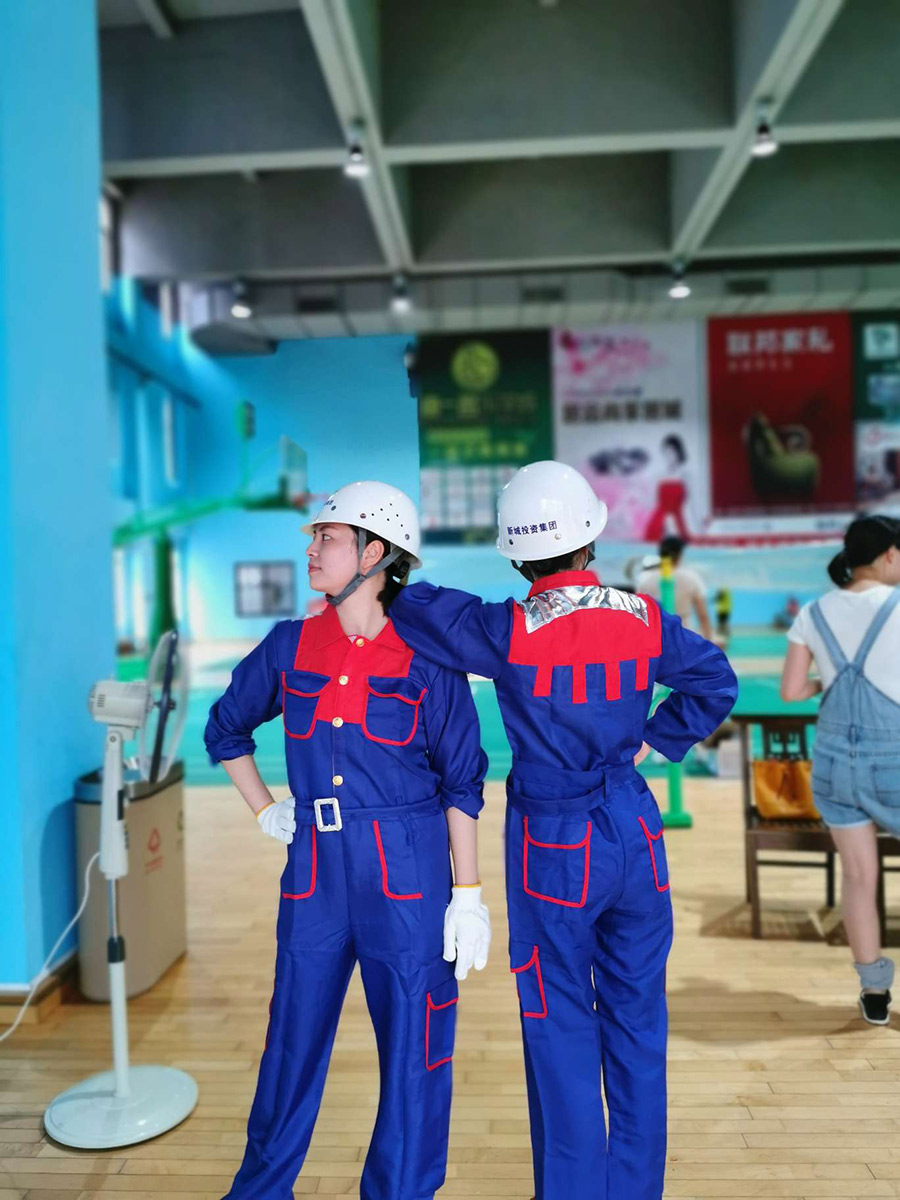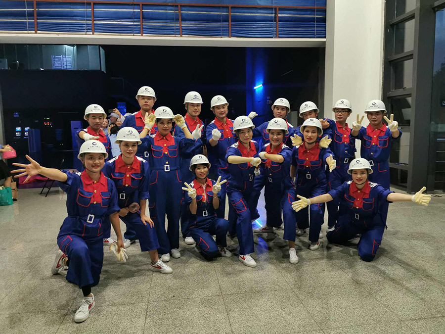 本次參演的演員們來自集團(tuán)公司及各個(gè)子公司,有動作不協(xié)調(diào)的工程技術(shù)理工男,有只擅埋頭碼字的行政文員,有物業(yè)安保小哥,有房產(chǎn)銷售精英等等,在這個(gè)節(jié)目里,他們都是新區(qū)建設(shè)者的代表和縮影。沒有舞臺經(jīng)驗(yàn)的他們,靠著一遍遍的艱苦練習(xí),一個(gè)月下來,每個(gè)人的膝蓋都是烏青發(fā)紫,終于將動作做到了整齊劃一。演員吳春妍同志剛休完產(chǎn)假,家里孩子還在哺乳中,為了支持她的排練演出,孩子爸爸常常幫把孩子送到在排練中的媽媽手上,以節(jié)約她回家的時(shí)間。許多演員為了排練,推掉了孩子暑假的活動安排,犧牲了假期。一些演員是白班夜班輪班制的,為了參加統(tǒng)一排練,調(diào)班連續(xù)工作。