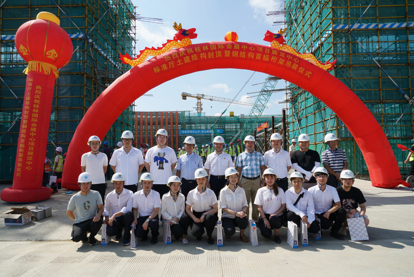 7月13日,桂林國際會展中心項目展覽中心標(biāo)準(zhǔn)廳土建結(jié)構(gòu)封頂暨鋼結(jié)構(gòu)首榀桁架吊裝儀式圓滿舉行。