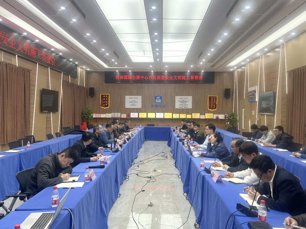 為認(rèn)真貫徹習(xí)近平總書記關(guān)于安全生產(chǎn)重要論述,在全國“兩會”期間進(jìn)一步做好桂林國際會展中心項(xiàng)目安全生產(chǎn)工作,2023年3月9日,桂林國際會展中心指揮部召開質(zhì)量安全文明施工督查會。臨桂新區(qū)黨工委委員、管委會常務(wù)副主任李星明,副主任張慧慶出席會議。會議由新城投集團(tuán)黨總支副書記、總經(jīng)理黃峻主持。