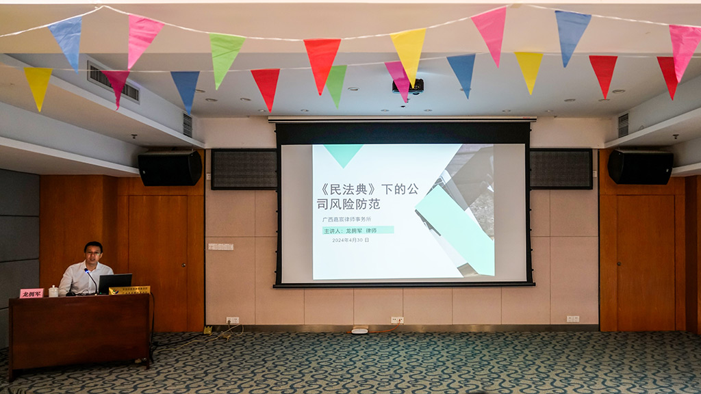 劉敏首先對(duì)應(yīng)邀參加講座的領(lǐng)導(dǎo)和市總工會(huì)社會(huì)聯(lián)絡(luò)部部長李暉,廣西嘉宸律師事務(wù)所律師黃維航表示熱烈的歡迎和衷心的感謝!隨后她介紹了新城投集團(tuán)的基本情況并指出,集團(tuán)及下屬子公司在應(yīng)對(duì)市場風(fēng)險(xiǎn)挑戰(zhàn)的能力相對(duì)較弱,部分業(yè)務(wù)在迎接工作挑戰(zhàn)和風(fēng)險(xiǎn)化解上存在很大差距,全過程、全鏈條風(fēng)險(xiǎn)防控工作體系和工作機(jī)制需進(jìn)一步完善。希望大家通過今天的講座,進(jìn)一步加大對(duì)公司金融、債務(wù)等領(lǐng)域風(fēng)險(xiǎn)防范措施,對(duì)集團(tuán)內(nèi)控內(nèi)審、風(fēng)險(xiǎn)管控機(jī)制等方面有新的啟發(fā)。