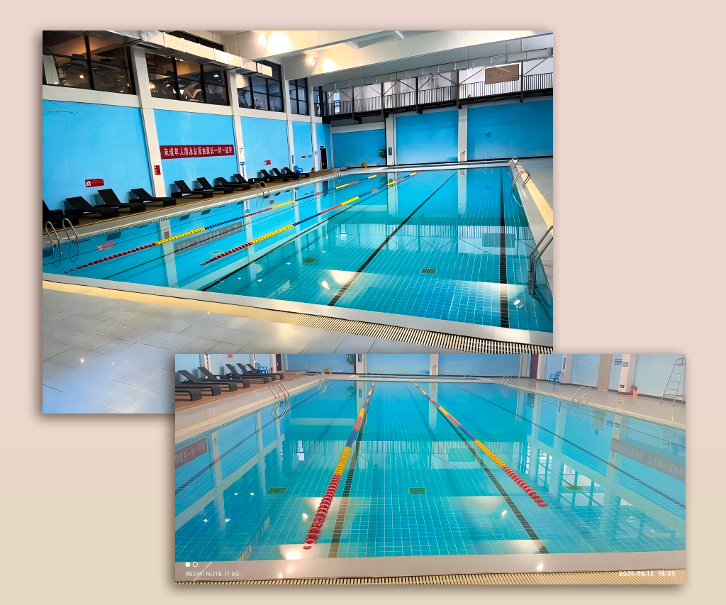 一樓是近300平方米“室內(nèi)恒溫游泳池”,泳池內(nèi)設(shè)有4條25米泳道,水溫、水質(zhì)均符合國家標準,讓您可以放心暢游。
